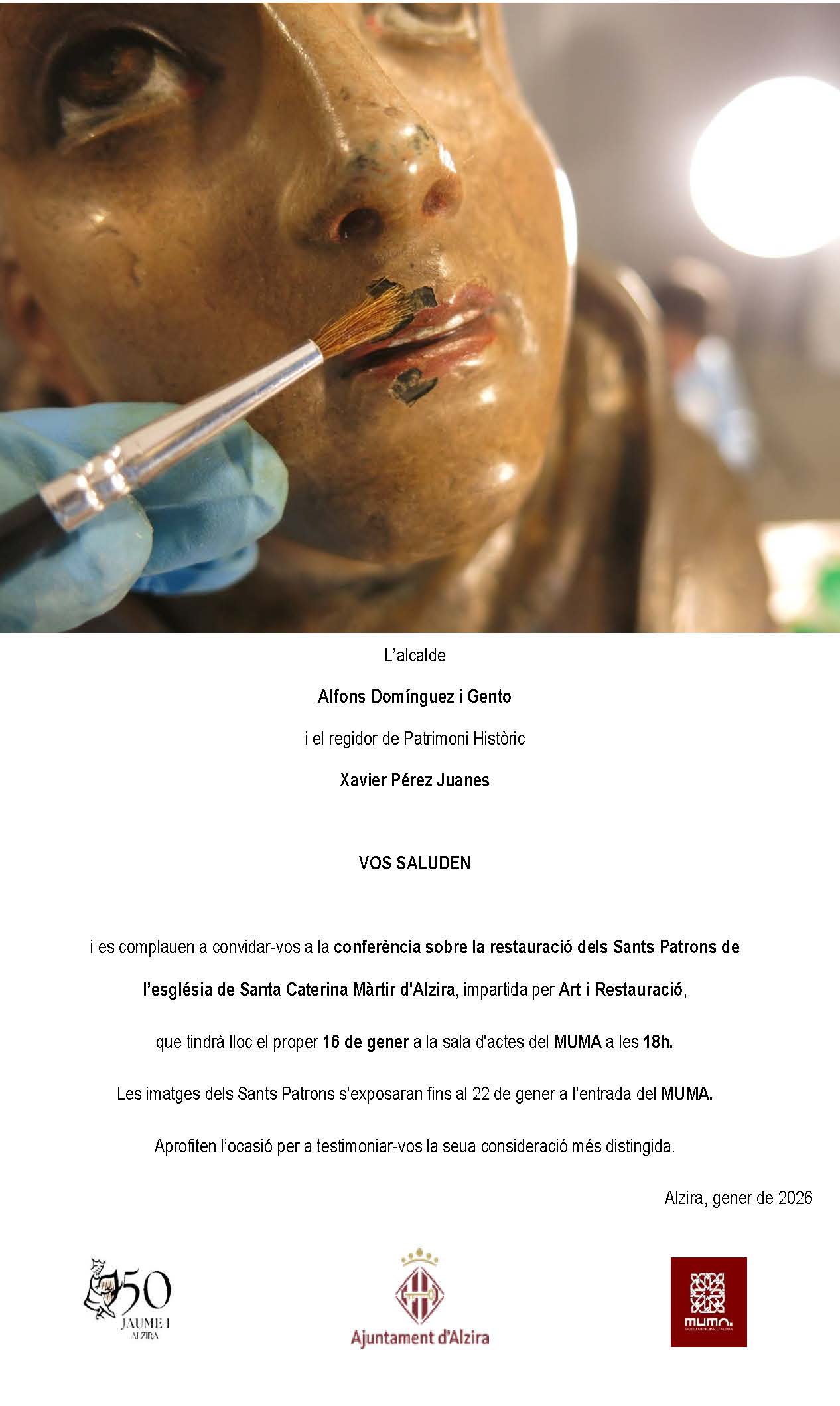 Home Agenda Conferència Conferència sobre la restauració dels Sants Patrons de l’església de Santa Caterina Màrtir d’Alzira