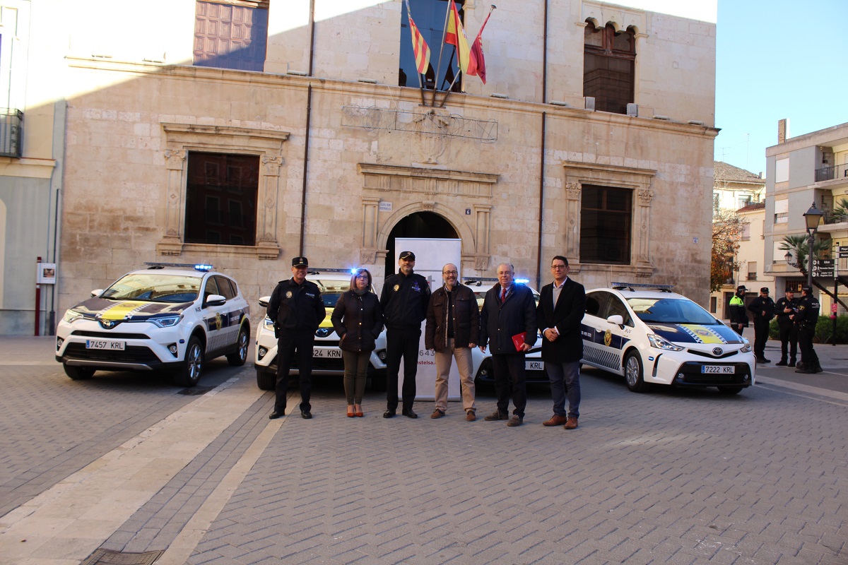 Alzira, 2 de gener de 2019.- L'Ajuntament d'Alzira ha rebut hui 4 nous vehicles per a la Policia Local. El lliurament ha tingut lloc a la porta del consistori i han assistit l'alcalde de la ciutat, Diego Gómez, la regidora de Seguretat, Sara Garés el Cap de Policia, Jorge Iglesias i altres membres del Departament. Es tracta de vehicles híbrids automàtics, concretament dos tot-terrenys Toyota RAV 4 i dos Toyota ...