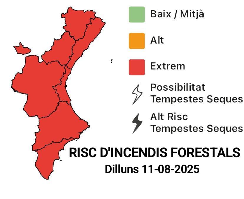 S’intensifica la vigilància forestal i es recorda que estan prohibides les cremes agrícoles a menys de 500 m de sòl forestal fins al 15 d’octubre La massa d'aire africà que sobrevola la Península Ibèrica des de fa més d'una setmana abrasarà durant uns dies més a la Comunitat Valenciana. De fet, s'espera que el pic màxim d'esta onada de calor s'aconseguisca entre hui i demà. A més, l'Agència Estatal de ...