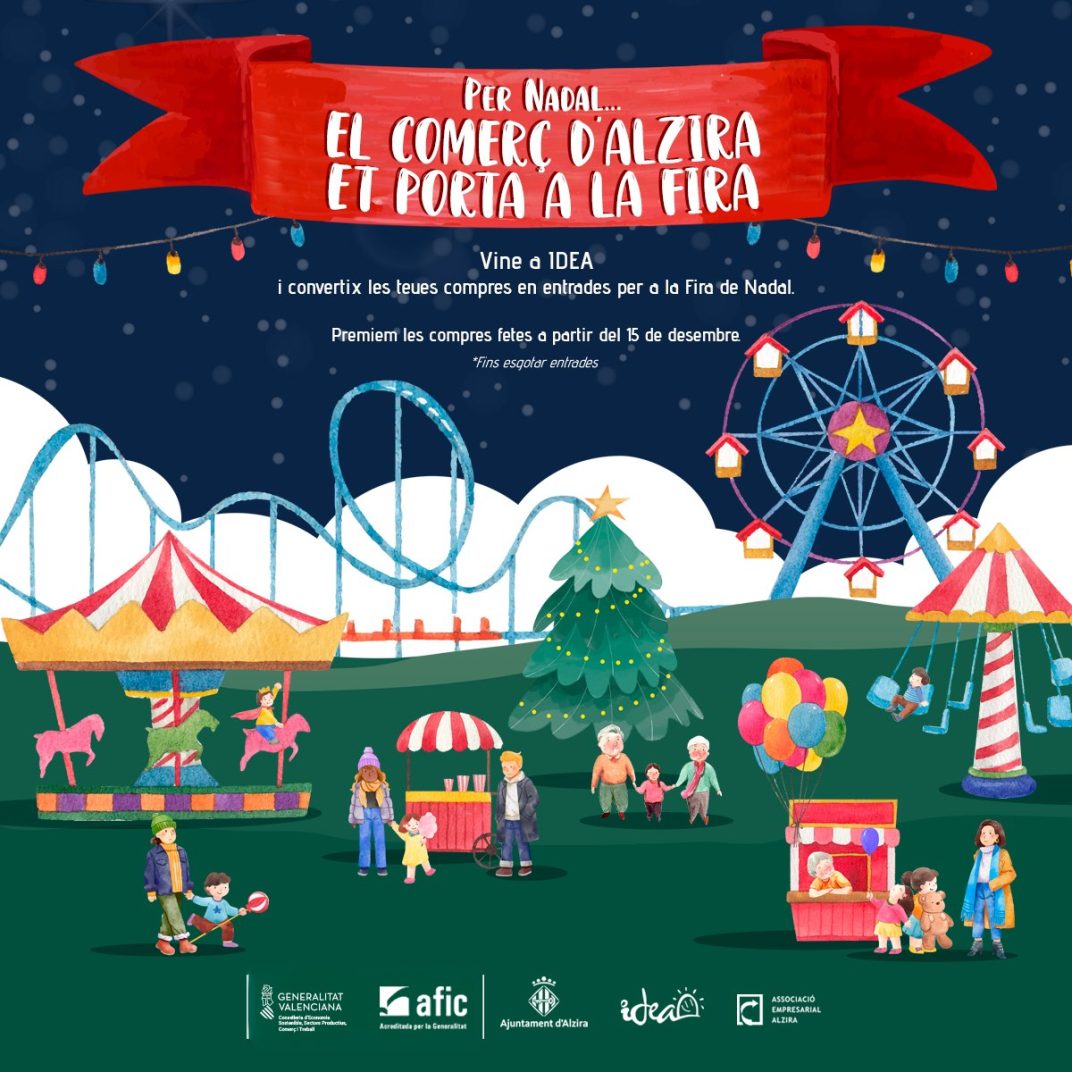 Un any més, l’Ajuntament d’Alzira, a través de la Regidoria de Comerç, ha impulsat la campanya “Per Nadal: el comerç d’Alzira et porta a la Fira”, amb l’objectiu d’unir el comerç local i la Fira de Nadal, creant sinergies entre tots dos sectors. La iniciativa vol posar el focus en les persones que visiten la ciutat i animar-les a realitzar les seues compres en els establiments locals, premiant així la confiança en el comerç de proximitat.