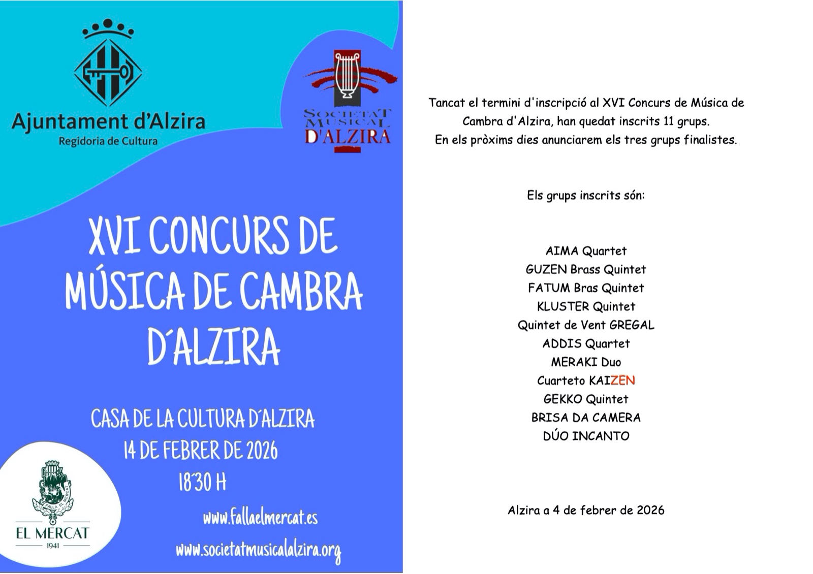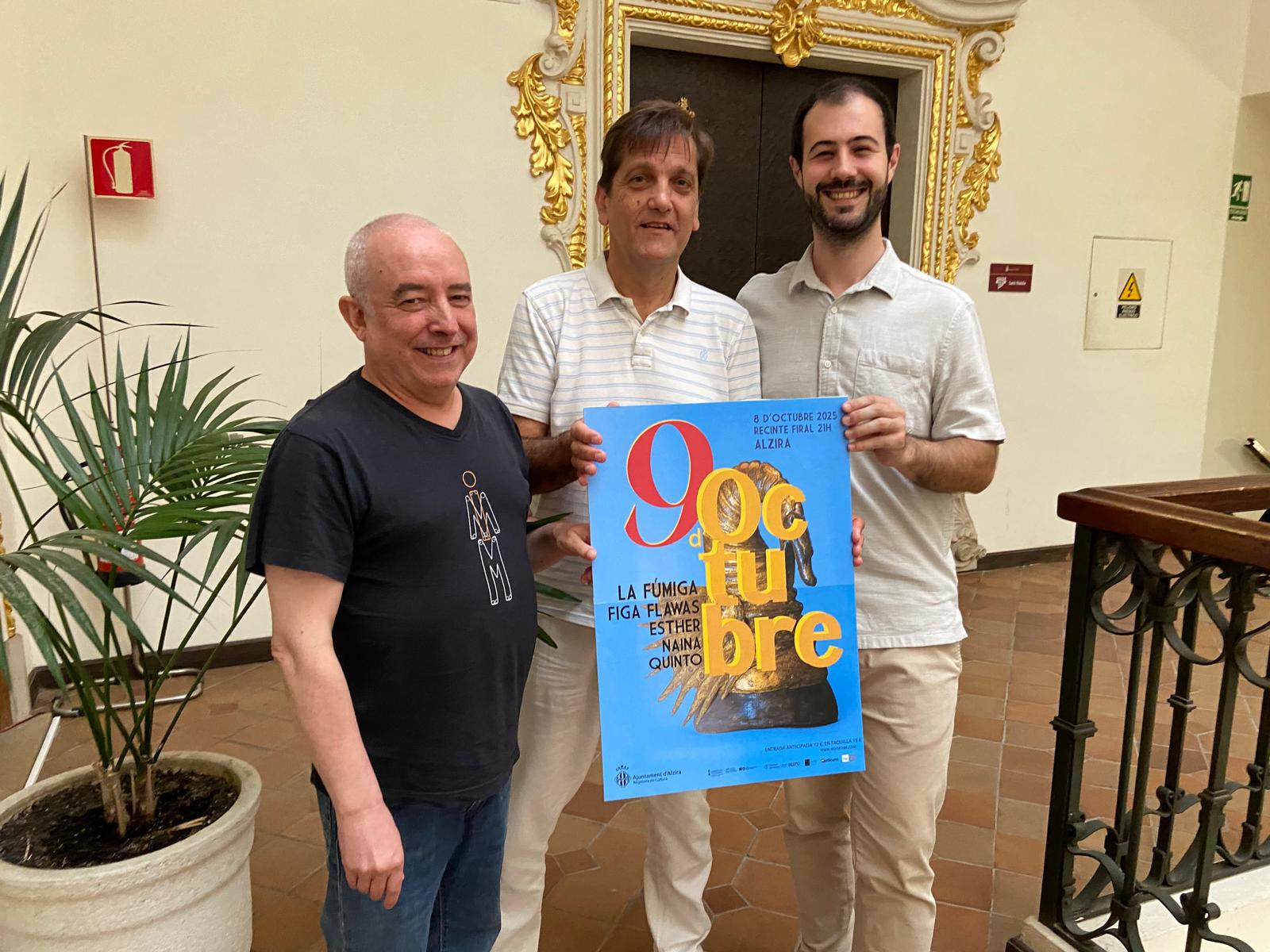 Les actuacions de Figa Flawas, Esther, Naina i Quinto completen el cartell L’Ajuntament d’Alzira presenta el cartell de la dècima edició del concert per a celebrar la festivitat del Nou d’Octubre. Alzira tornarà a celebrar la festa de tots els valencians amb este tradicional concert que organitza la Regidoria de Cultura i que se celebra la vespra d’esta festivitat, el dia 8, a partir de les 21 hores, al Recinte ...