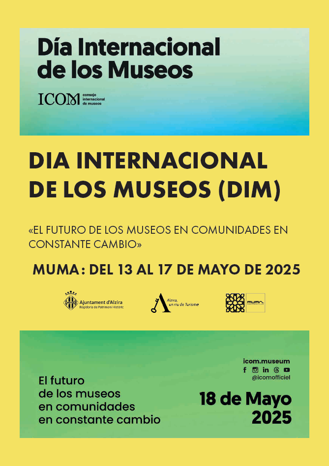 Amb motiu de la celebració del Dia Internacional dels Museus, el pròxim 18 de maig, Alzira presenta un programa d’activitats relacionades amb el nostre Museu. Sota el lema “El futur dels museus en comunitats en constant canvi”, la regidoria de Patrimoni històric convida a la ciutadania a reimaginar el paper dels museus com a connectors essencials, innovadors i guardians de la identitat cultural. Des del MUMA s’han organitzar diferents tipus ...
