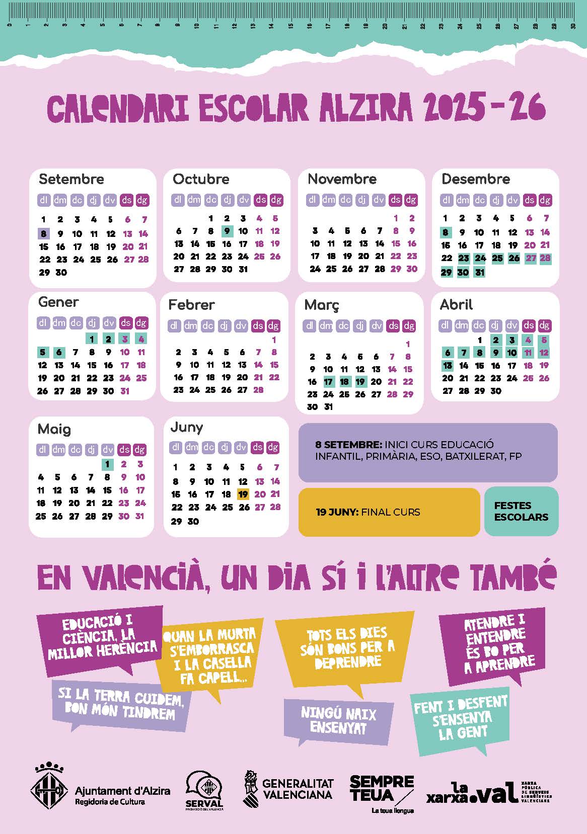 Educació i Infància Agenda educativa Bústia de suggeriments Calendari escolar Ciutat Amiga de la Infància Consell Municipal de Xiquets i Xiquetes Contacte Drets de les xiquetes i xiquets Escoles Infantils Municipals d’Alzira Escolarització Infocentres Novetats Pla d'Infància Premis i concursos Tràmits i Ordenances