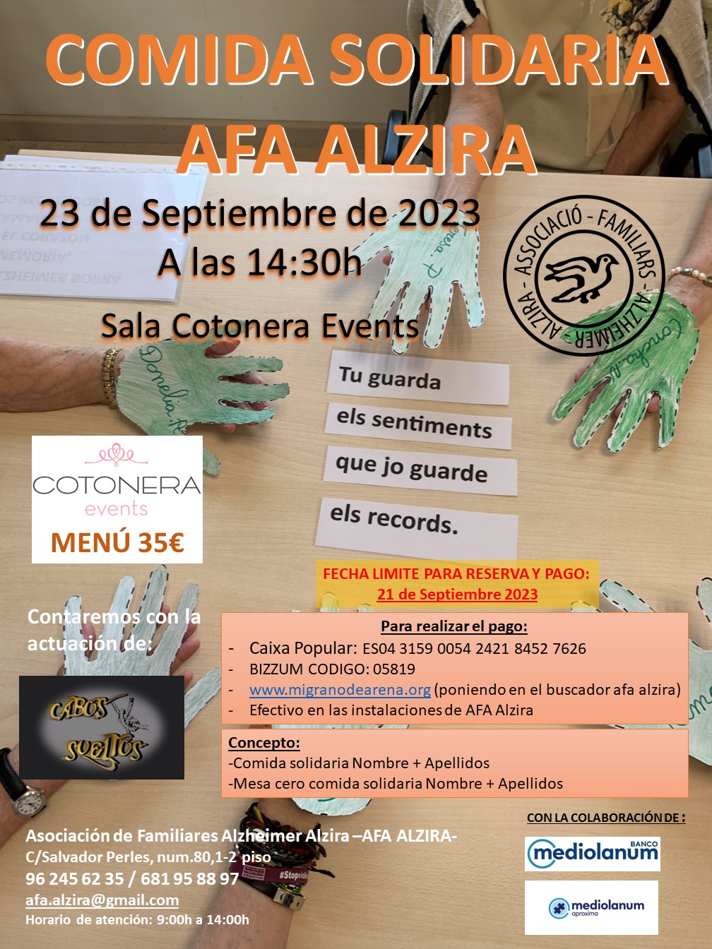 👉DINAR SOLIDARI AFA ALZIRA. Menú 35€
