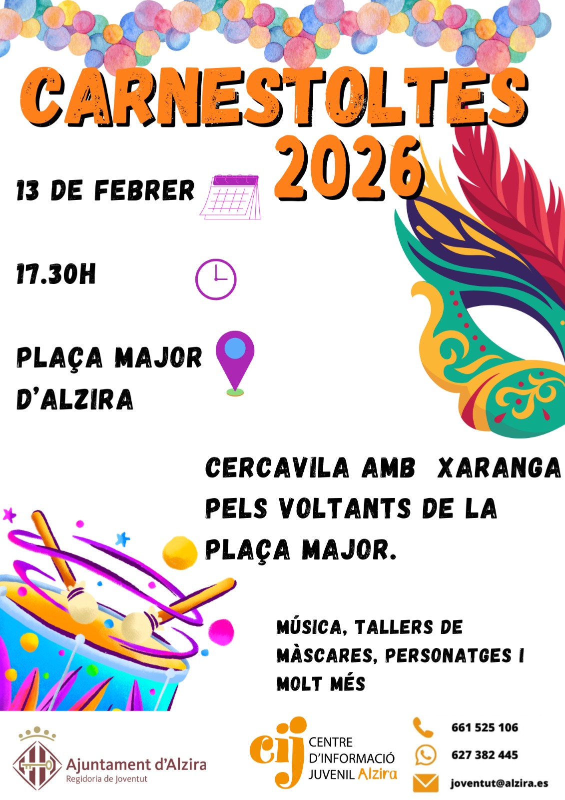 Alzira celebrarà Carnestoltes 2026 amb cercavila, música i activitats per a tota la família