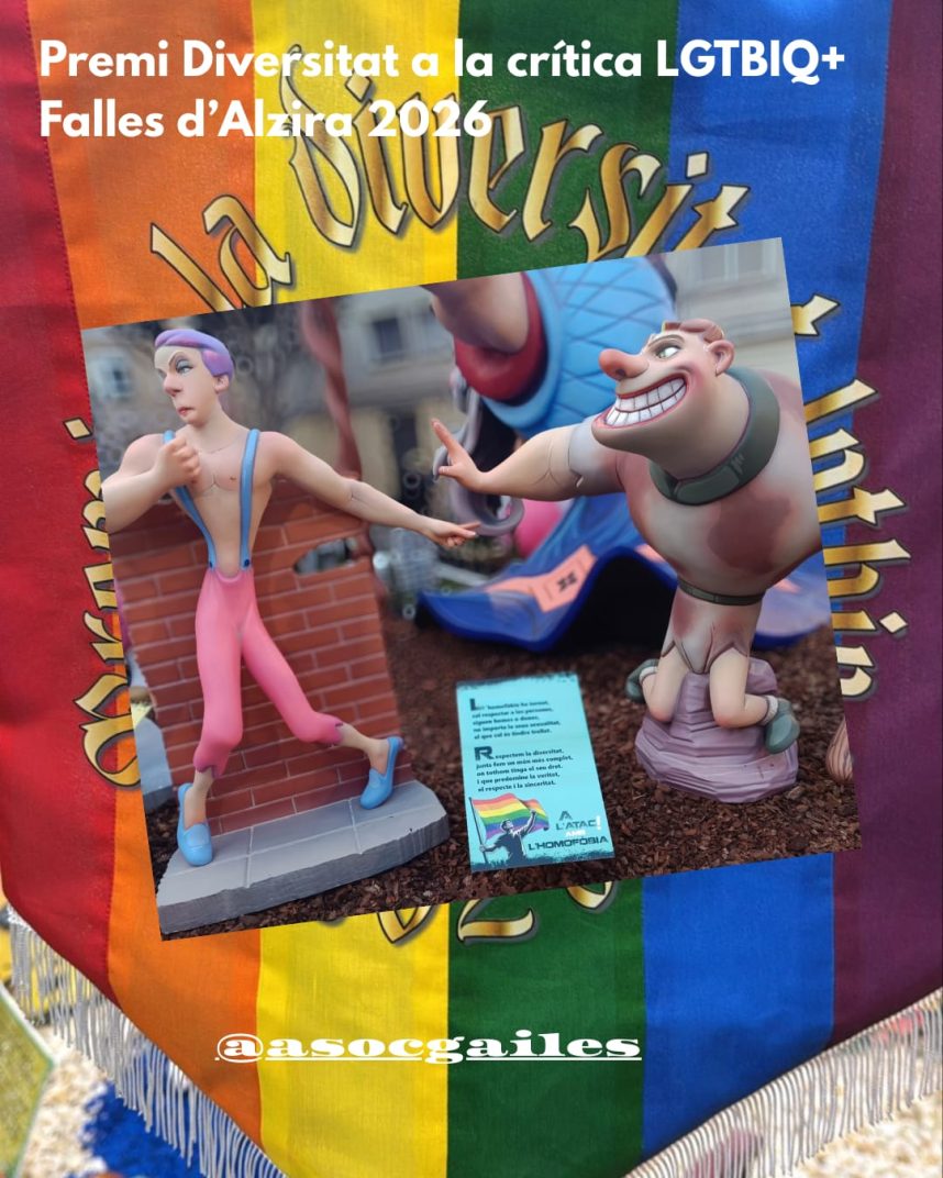 L’Associació GAILES en col·laboració amb la regidoria de Festes de l’Ajuntament d’Alzira han convocat per tercer any el Premi Diversitat a la Crítica LGTBIQ+ Falles d’Alzira 2026, una iniciativa que té com a objectiu promoure el tractament respectuós de la diversitat sexual, de gènere i familiar en els monuments fallers.