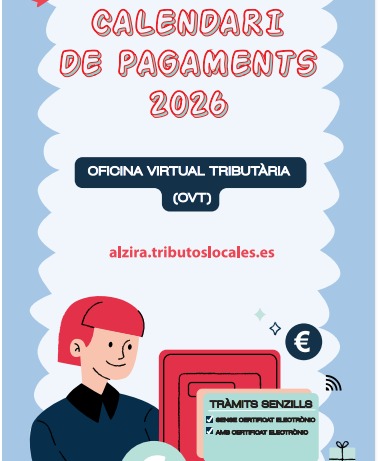 Alzira fa públic el calendari de pagaments de taxes i tributs de 2026, que s’obrirà el pròxim 10 de març amb el cobrament de l’IBI urbana