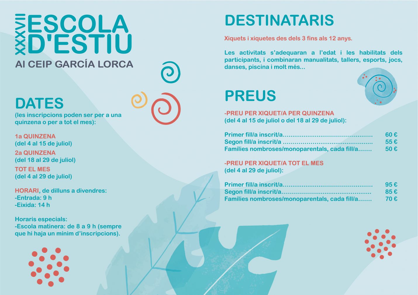 - L’Escola d’Estiu es realitzarà entre el 4 i el 29 de juliol, de 9 a 14 hores