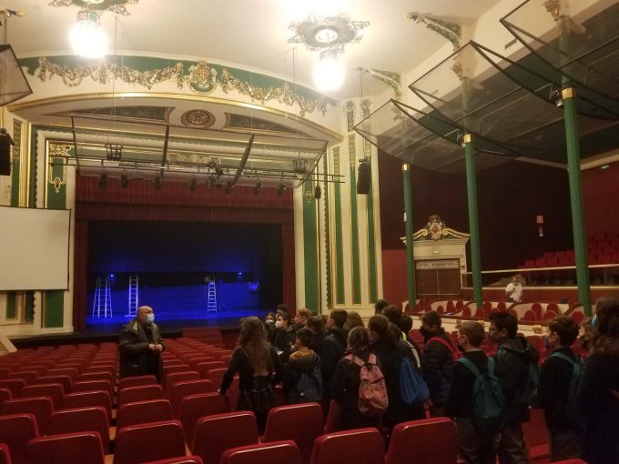 Hui comencen les visites guiades dels escolars al Gran Teatre amb l’alumnat del col·legi Sants Patrons i el CEIP Tirant lo Blanc. Es tracta d’una activitat que s’emmarca en la celebració del centenari d’esta instal·lació, que el passat octubre va reobrir les portes després d’unes obres de millora. La reobertura va coincidir amb el 100 aniversari del teatre alzireny, i es va aprofitar per a la presentació d’una sèrie de propostes per a festejar l’efemèride. Entre els recursos i materials creats per al públic escolar està la creació de recursos didàctics, com el quadernet de Marina Pascual Descobrim el Gran Teatre, que s’ha repartit als centres educatius de la ciutat, o la maqueta de la caixa escènica de Javi Benavent, i també la posada en marxa de visites guiades per a l’alumnat d’Alzira.