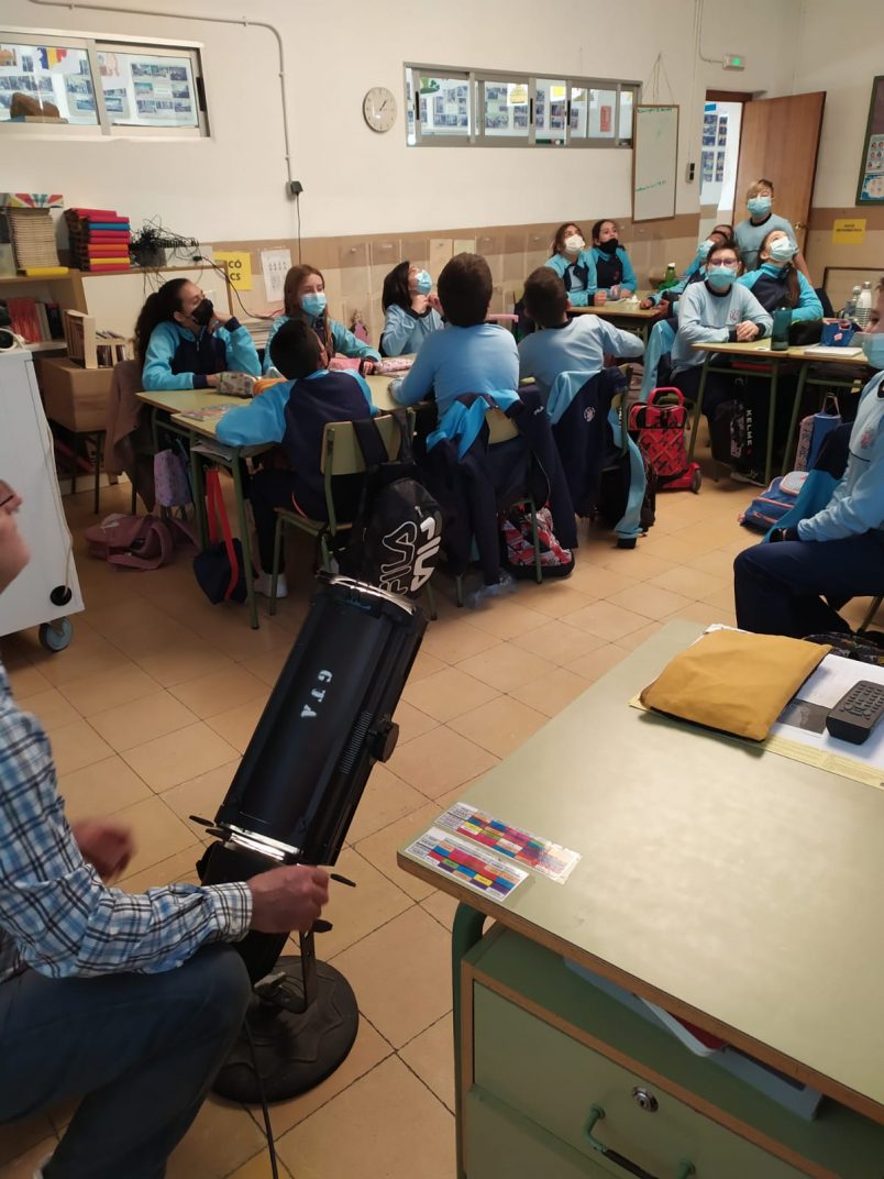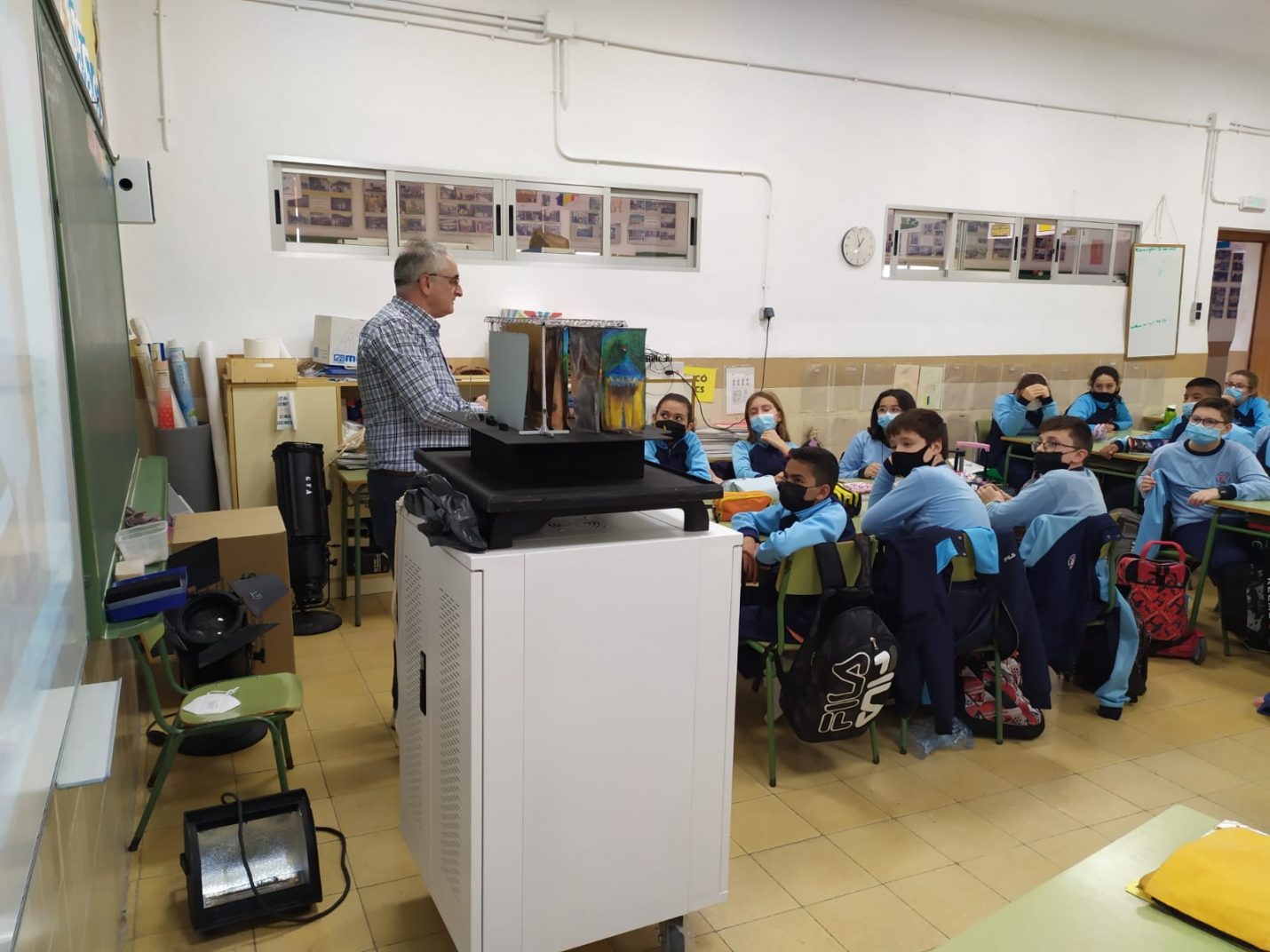 Alzira, 12 d’abril de 2022._Els xiquets i xiquetes dels centres escolars d’Alzira a més de poder visitar el Gran Teatre per a conéixer-lo per dins, poden rebre’l també directament a les seues aules. La Regidoria de Cultura ha organitzat sessions didàctiques sobre com és muntar una obra de teatre per dins. Les sessions les realitza l’artista alzireny Xavier Benavent, antic treballador del Gran Teatre, qui a més és l’autor de la maqueta de la caixa escènica que s’ha repartit als centres amb motiu del centenari. Esta sessió didàctica està orientada a l’alumnat de cinqué i sisé de primària.