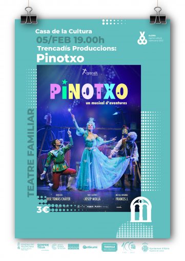 El teatre familiar arribarà a la Casa de la Cultura el pròxim 5 de febrer, amb l’obra de Trencadís Produccions, Pinotxo. Un conte musical. Una visió acolorida i divertida del conte clàssic, plena d’aventures, amb balls i cançons que agradaran a tota la família. També per a públic familiar (a partir de 7 anys), i també a la Casa de la Cultura, és la pel·lícula Minari. Historia de mi familia, que es programa dins del cicle «Club Cinema Alzira» el 4 de febrer a les 20.30 hores.