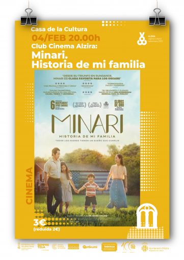 El teatre familiar arribarà a la Casa de la Cultura el pròxim 5 de febrer, amb l’obra de Trencadís Produccions, Pinotxo. Un conte musical. Una visió acolorida i divertida del conte clàssic, plena d’aventures, amb balls i cançons que agradaran a tota la família. També per a públic familiar (a partir de 7 anys), i també a la Casa de la Cultura, és la pel·lícula Minari. Historia de mi familia, que es programa dins del cicle «Club Cinema Alzira» el 4 de febrer a les 20.30 hores.