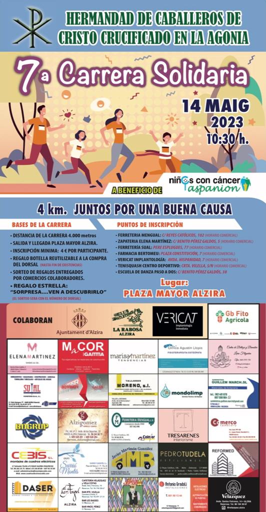 Inicio Agenda Esport 7a edició de la carrera solidària 7a edició de la carrera solidària 7a edició de la carrera solidària organitzada per la Hermandad de Caballeros de Cristo Crucificado en la Agonia en favor Aspanion Niños Con Cáncer Diumenge 14 de maig, a les 10.30 h Plaça Major d’Alzira + Añadir Google Calendar + exportación iCal / Outlook Fecha 14 May 2023 ¡Caducado! Hora 10:30 - 12:00 Categoría Esport Compartir este evento