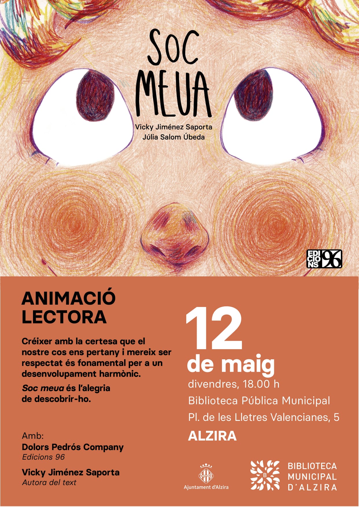 Inicio Agenda Presentació ANIMACIÓ LECTORA ANIMACIÓ LECTORA ANIMACIÓ LECTORA Divendres 12 de maig, a les 18 h a la Biblioteca Municipal d’Alzira Presentació i activitat del llibre «Soc meua» de Vicky Jiménez Saporta d’Edicions 96. L’autora i mestra ens presentarà el llibre i farà una activitat entorn al mateix. + Añadir Google Calendar + exportación iCal / Outlook Fecha 12 May 2023 ¡Caducado! Hora 18:00 - 19:00 Categoría Presentació Compartir este evento