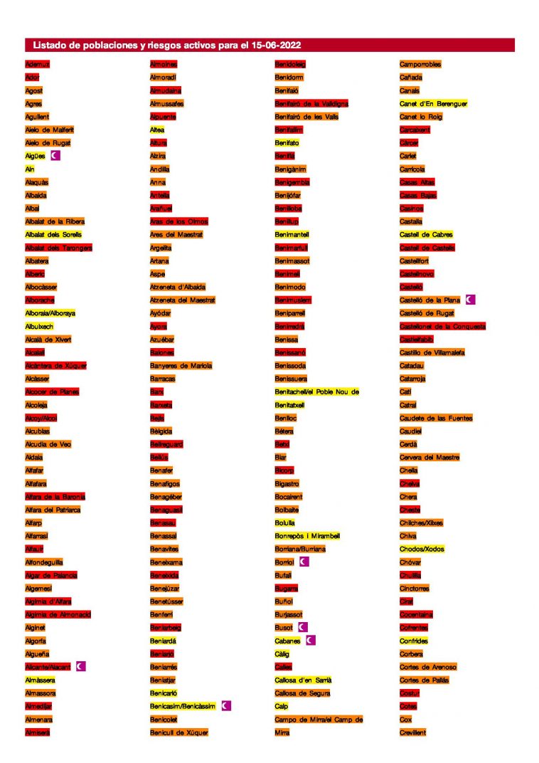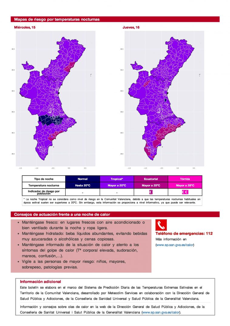 Según las predicciones realizadas dentro del Programa de Prevención y Atención a los Problemas de Salud Derivados de las Temperaturas Extremas en la Comunidad Valenciana a la La Ribera Alta y en las siguientes comarcas:
