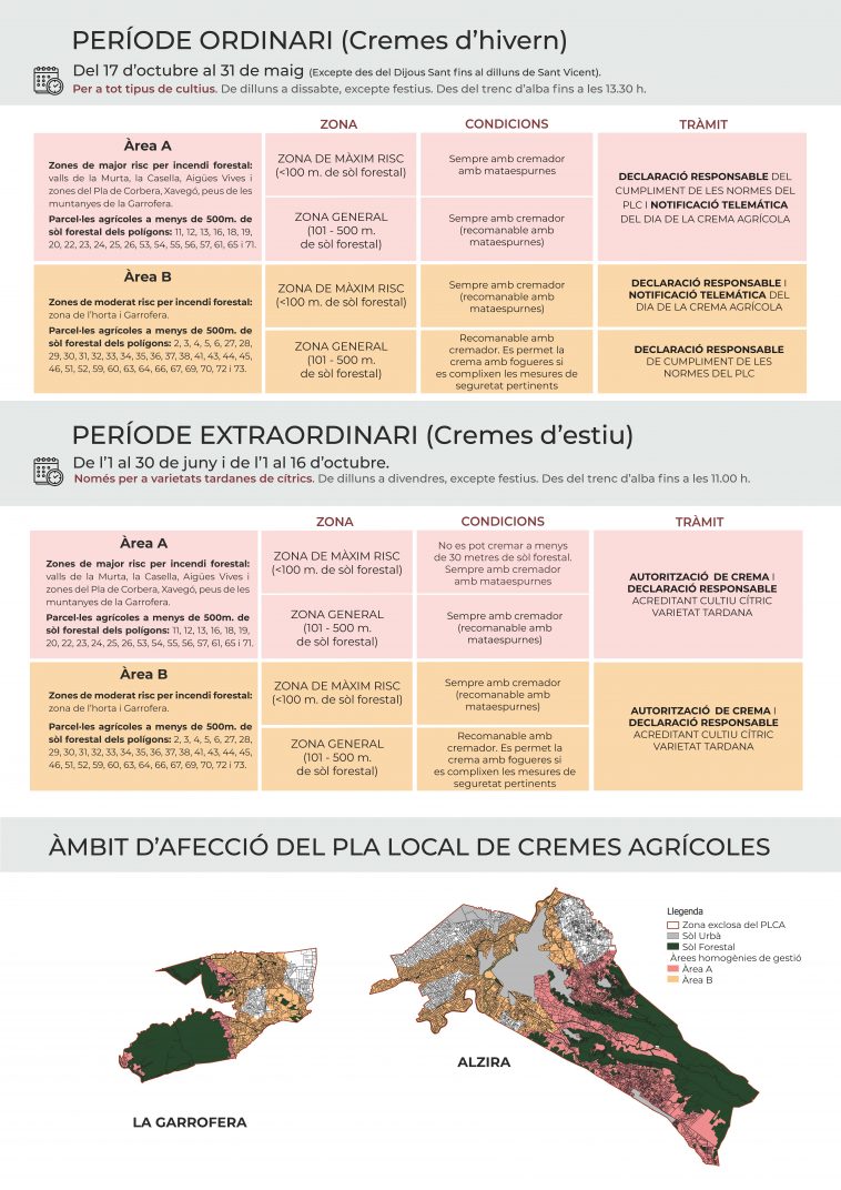 Entre l’1 de juliol i el 30 de setembre, les cremes agrícoles estaran prohibides en tot l’àmbit d’afecció del Pla Local de Cremes Agrícoles d’Alzira.