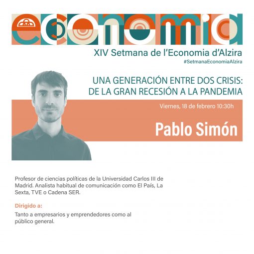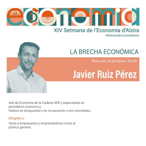 Alzira volverá a ser el epicentro económico, laboral y de nuevas tendencias digitales entre el 14 y el 18 de febrero con la celebración de la XIV Semana de la Economía de Alzira. Las numerosas charlas, ponencias y mesas redondas, dirigidas tanto a las nuevas generaciones como al público adulto, promoverán un clima de aprendizaje compartido y enriquecedor gracias a la participación de conferenciantes de gran nivel, explican desde el Departamento de Idea, que se encarga de la organización de los actos. Entre los nombres más conocidos figura el periodista valenciano Javier Ruiz, jefe de Economía de la Cadena SER, la comunicadora Samanta Villar, presentadora de 21 días y de Conexión Samanta, que ofrecerá el 14 de febrero a las 13 horas la charla inaugural «La clave del éxito: saber conectar», y el también mediático Pablo Simón, profesor de ciencias políticas en la Universidad Carlos III de Madrid y analista habitual en El País, La Sexta, TVE o Cadena SER, que el 18 de febrero a las 10.30 h ofrecerá la conferencia «Una generación entre dos crisis: de la Gran Recesión a la pandemia».