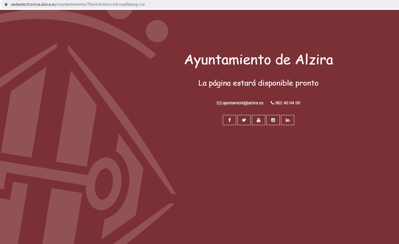 Amb l’objectiu de millorar la usabilitat del Servei, des de hui divendres dia 28 de gener, per tasques de manteniment, la Seu Electrónica municipal no estarà disponible. El dilluns 31 de gener, a les 8 hores del matí, estarà de nou operativa la Seu per a qualsevol tipus de tràmit. En cas de necessitat, es pot acudir al Punt d'Accés General de l'Administració de l'Estat: https://administracion.gob.es/pag_Home/atencionCiudadana/encuentraTuOficina/REC.html Disculpeu les molèsties. ...