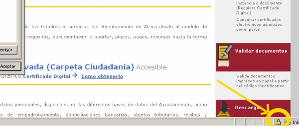 Desde el momento en que usted accede a la dirección de la Sede electrónica del Ayuntamiento de Alzira, y mientras usted se mantenga en sus páginas, la comunicación entre su ordenador o dispositivo móvil y la Sede electrónica se realiza siempre a través de un canal seguro, es decir, en el que la información y el contenido de las páginas y documentos que usted visualiza viajan cifrados por la Red.