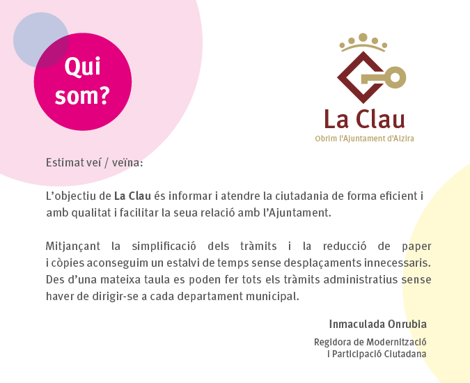 El objetivo de La Clau es informar y atender la ciudadanía de forma eficiente y con calidad y facilitar su relación con el Ayuntamiento.